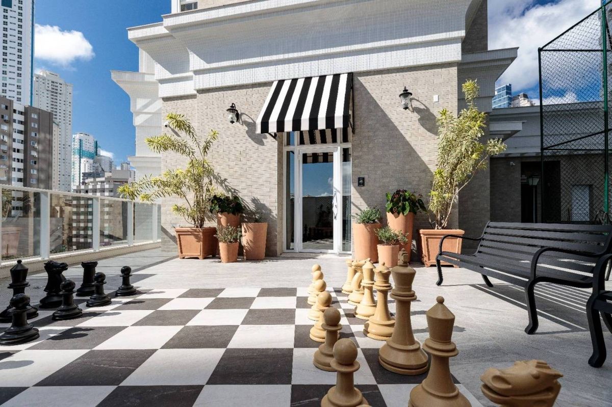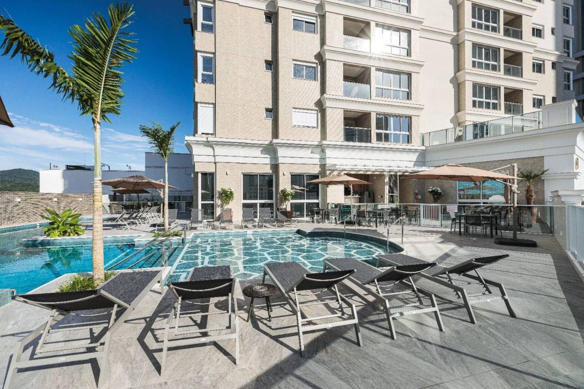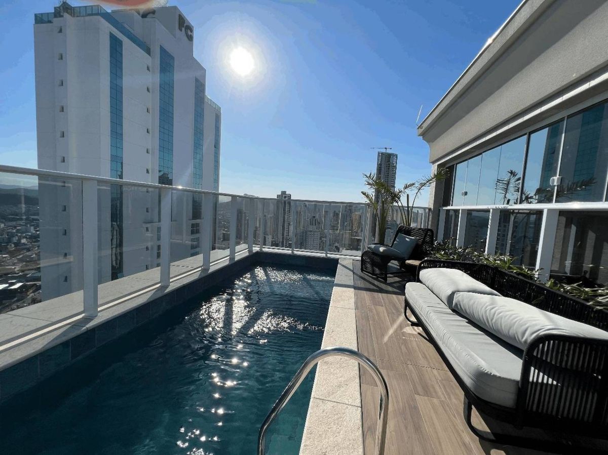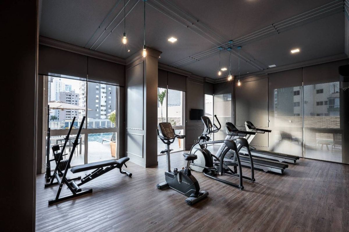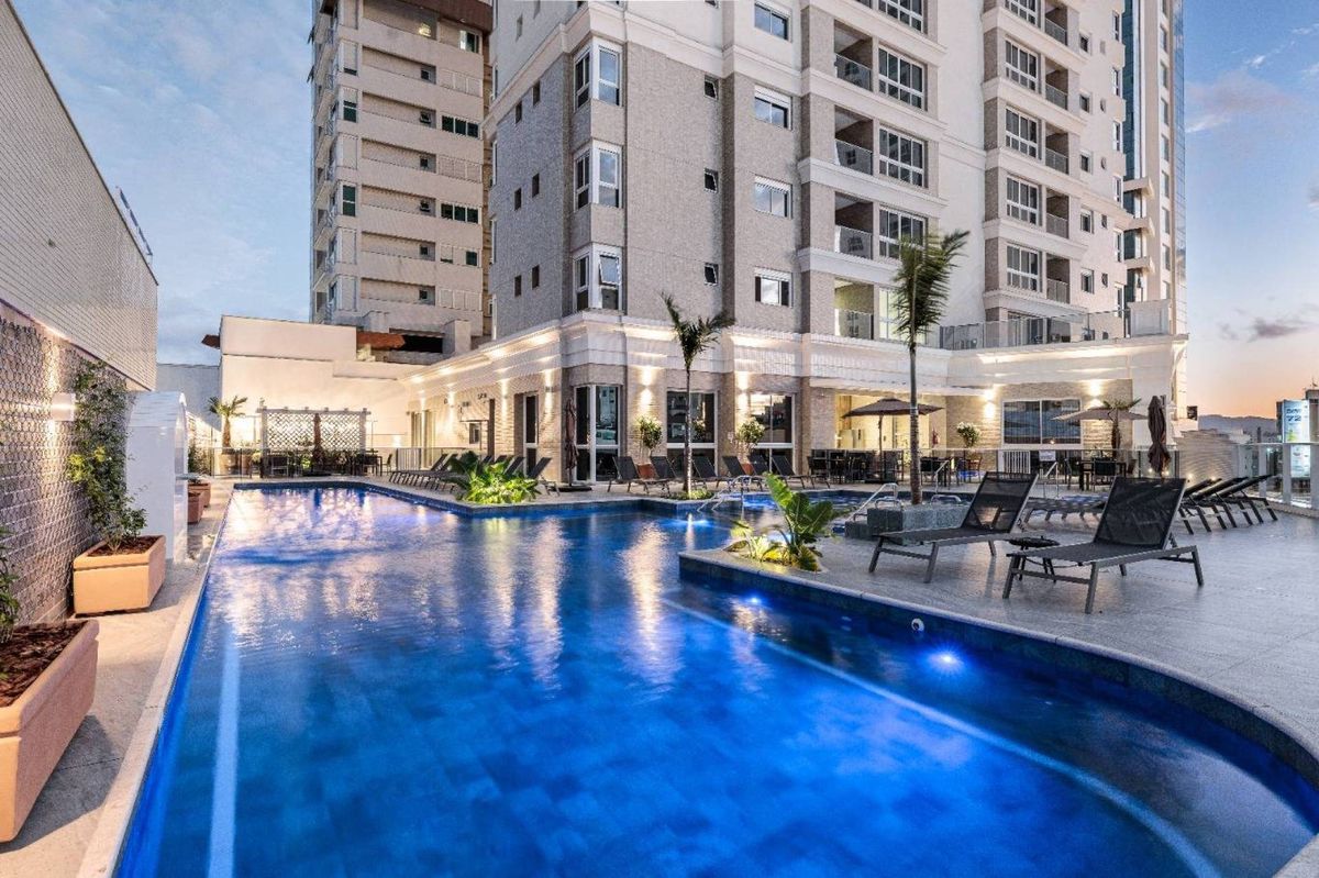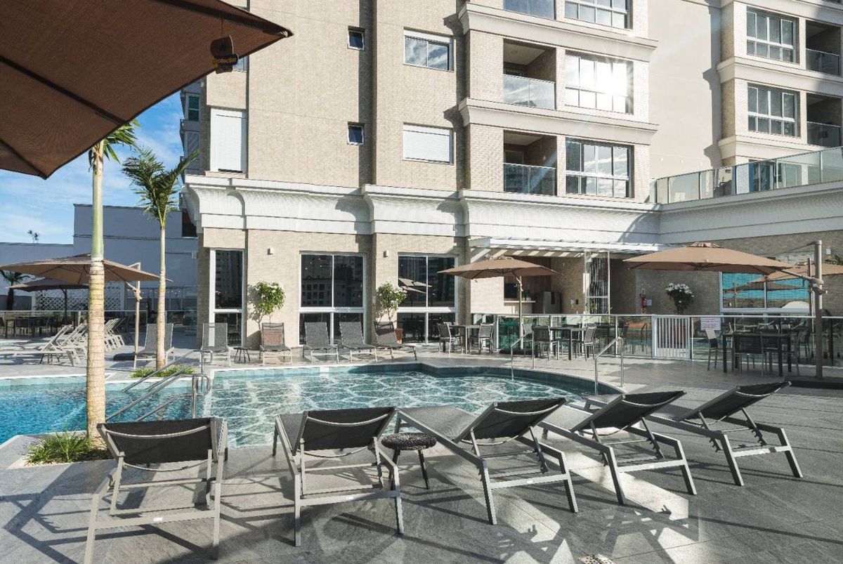 O empreendimento possui 38 pavimentos, Hall social de entrada com pé-direito duplo finamente decorado, 02 apartamentos por andar, 08 salas comerciais, Ampla área de lazer com mais de 1.700m2, 03 elevadores (02 sociais e 01 de serviço), área de lazer completa, possuindo Piscina com raia semi-olímpica de 25m, Espelho d?água, Espaço gourmet com chopeira, Quiosque com churrasqueira a carvão, Salão de festas, Outdoor grill com forno de pizza e charbroiler, Espaço teen com jogos eletrônicos, Academia, Jogos e bar, Kids room, Playground, Quadra de futebol society, Áreas comuns equipadas e decoradas, Cabeamento de antena local de TV instalada nos apartamentos e áreas comuns, Entrada exclusiva para serviço de banhistas com lava-pés, Garagens com revestimento em porcelanato antiderrapante, Gás natural canalizado - SC gás, Sistema de monitoramento por câmeras, Guarita climatizada totalmente equipada com porteiro 24horas, Acesso por biometria e senha nas áreas comuns, Wi-Fi em todas as áreas comuns e de lazer, Bicicletário equipado para guarda e manutenção de bicicletas.