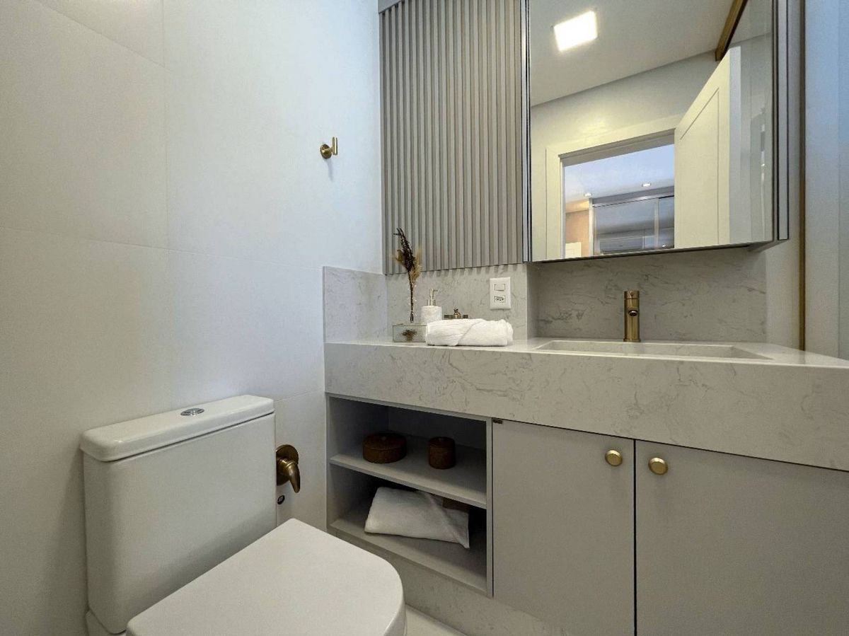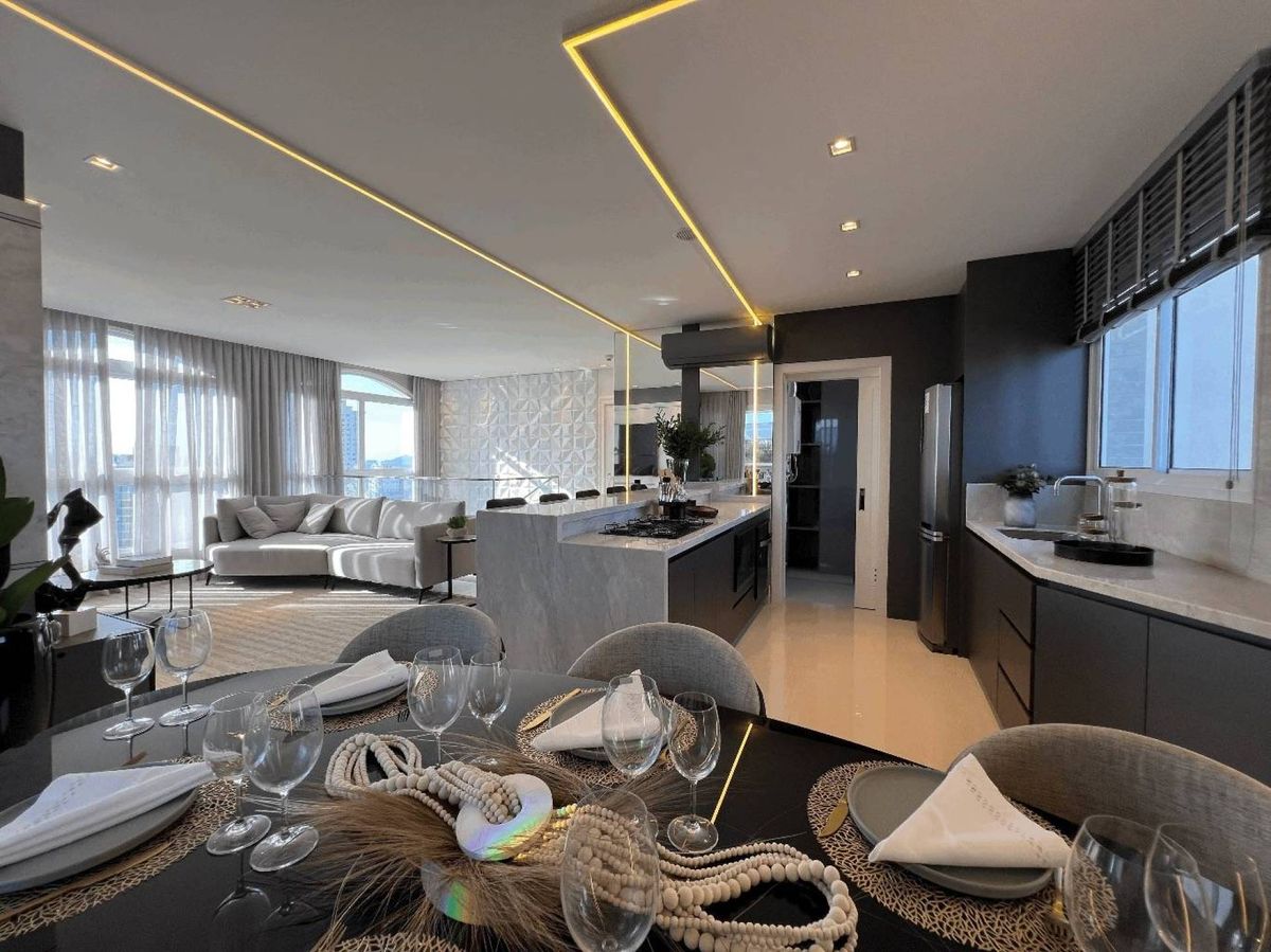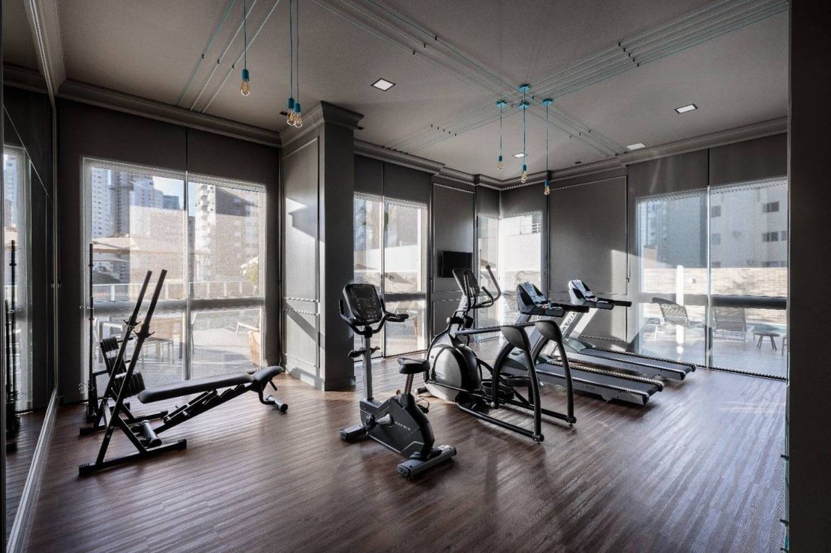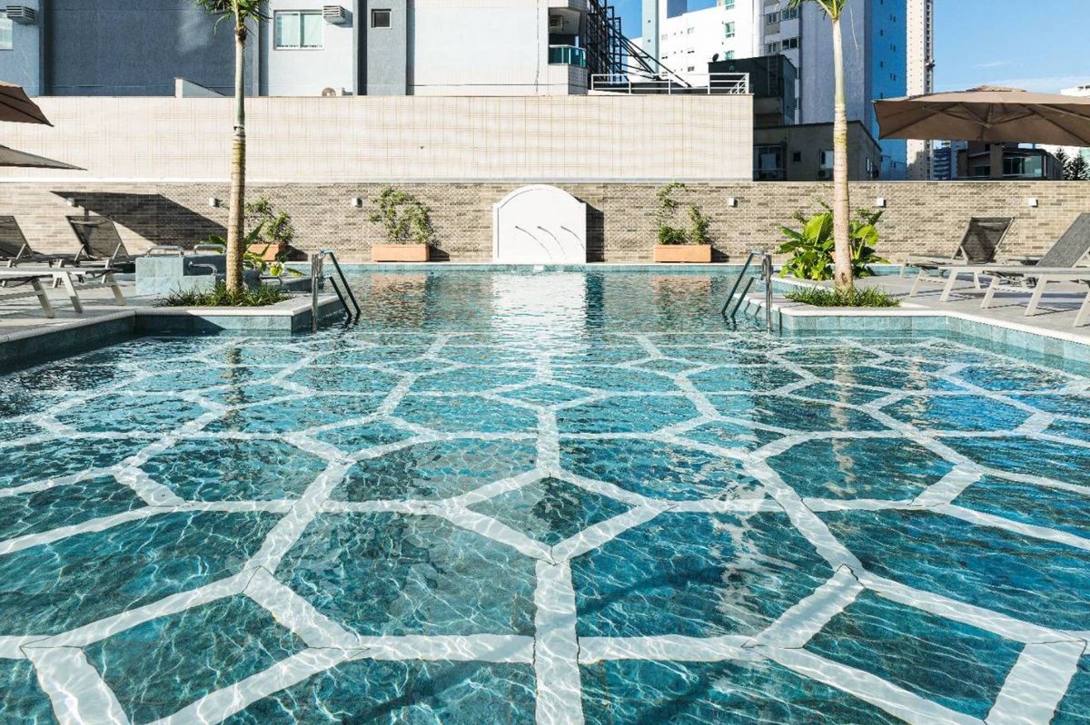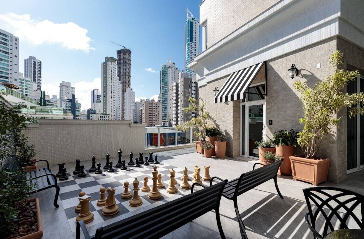 O empreendimento possui 38 pavimentos, Hall social de entrada com pé-direito duplo finamente decorado, 02 apartamentos por andar, 08 salas comerciais, Ampla área de lazer com mais de 1.700m2, 03 elevadores (02 sociais e 01 de serviço), área de lazer completa, possuindo Piscina com raia semi-olímpica de 25m, Espelho d?água, Espaço gourmet com chopeira, Quiosque com churrasqueira a carvão, Salão de festas, Outdoor grill com forno de pizza e charbroiler, Espaço teen com jogos eletrônicos, Academia, Jogos e bar, Kids room, Playground, Quadra de futebol society, Áreas comuns equipadas e decoradas, Cabeamento de antena local de TV instalada nos apartamentos e áreas comuns, Entrada exclusiva para serviço de banhistas com lava-pés, Garagens com revestimento em porcelanato antiderrapante, Gás natural canalizado - SC gás, Sistema de monitoramento por câmeras, Guarita climatizada totalmente equipada com porteiro 24horas, Acesso por biometria e senha nas áreas comuns, Wi-Fi em todas as áreas comuns e de lazer, Bicicletário equipado para guarda e manutenção de bicicletas.