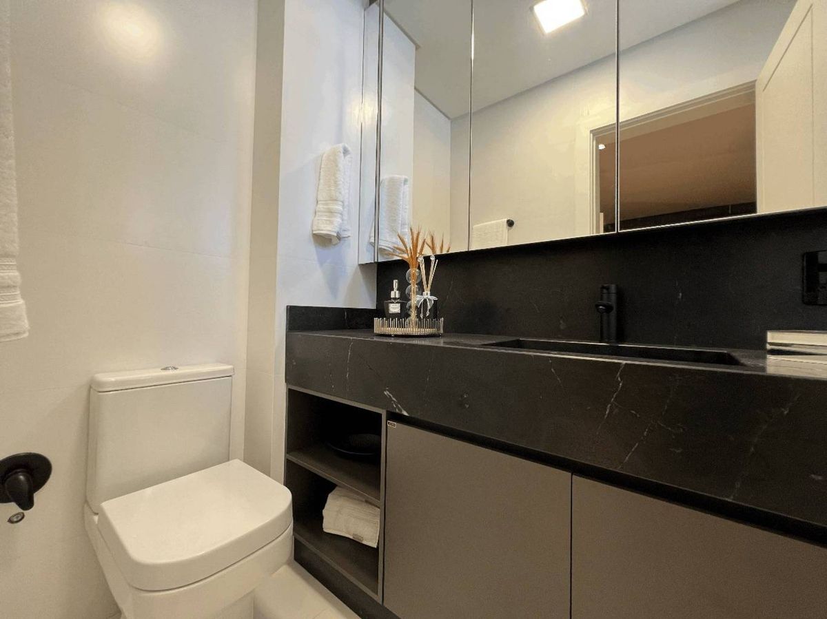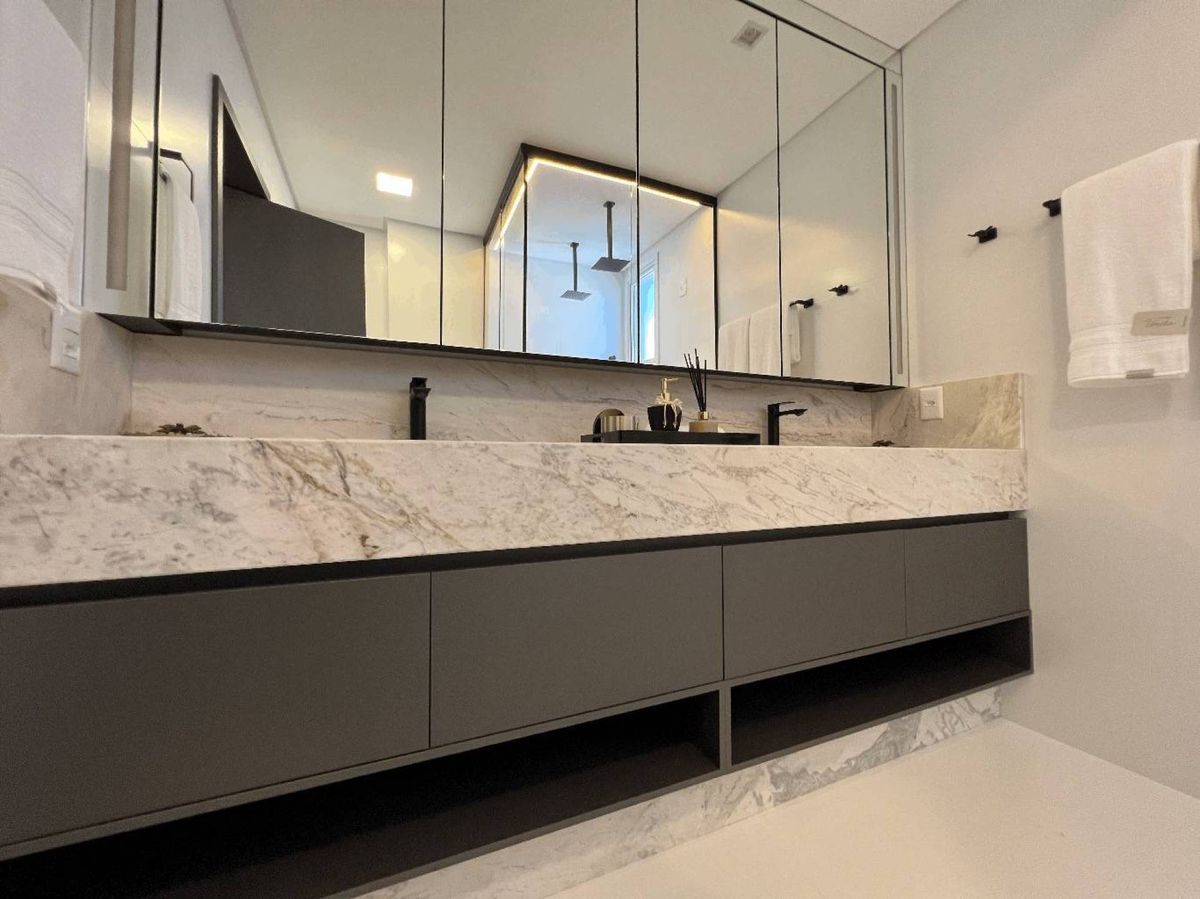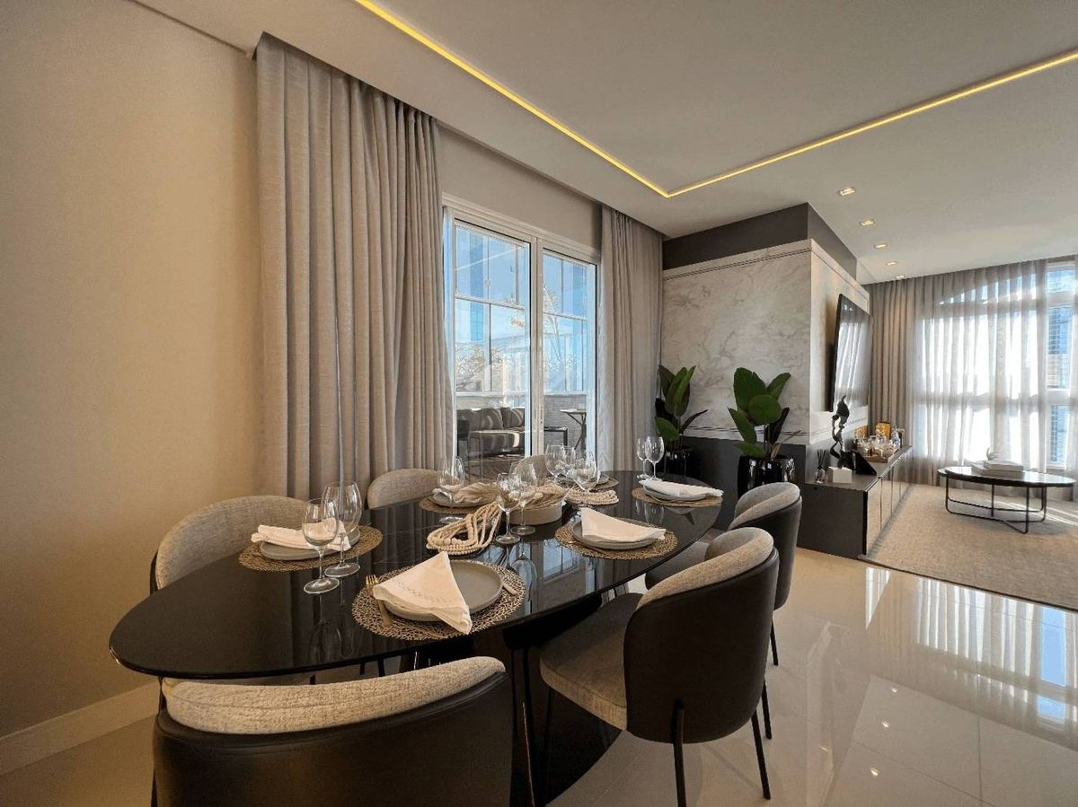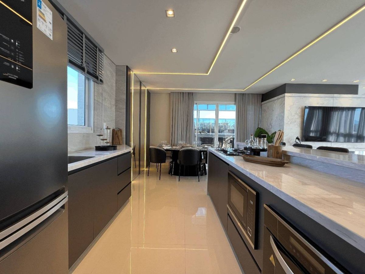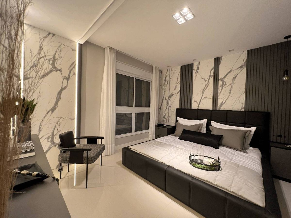 O empreendimento possui 38 pavimentos, Hall social de entrada com pé-direito duplo finamente decorado, 02 apartamentos por andar, 08 salas comerciais, Ampla área de lazer com mais de 1.700m2, 03 elevadores (02 sociais e 01 de serviço), área de lazer completa, possuindo Piscina com raia semi-olímpica de 25m, Espelho d?água, Espaço gourmet com chopeira, Quiosque com churrasqueira a carvão, Salão de festas, Outdoor grill com forno de pizza e charbroiler, Espaço teen com jogos eletrônicos, Academia, Jogos e bar, Kids room, Playground, Quadra de futebol society, Áreas comuns equipadas e decoradas, Cabeamento de antena local de TV instalada nos apartamentos e áreas comuns, Entrada exclusiva para serviço de banhistas com lava-pés, Garagens com revestimento em porcelanato antiderrapante, Gás natural canalizado - SC gás, Sistema de monitoramento por câmeras, Guarita climatizada totalmente equipada com porteiro 24horas, Acesso por biometria e senha nas áreas comuns, Wi-Fi em todas as áreas comuns e de lazer, Bicicletário equipado para guarda e manutenção de bicicletas.