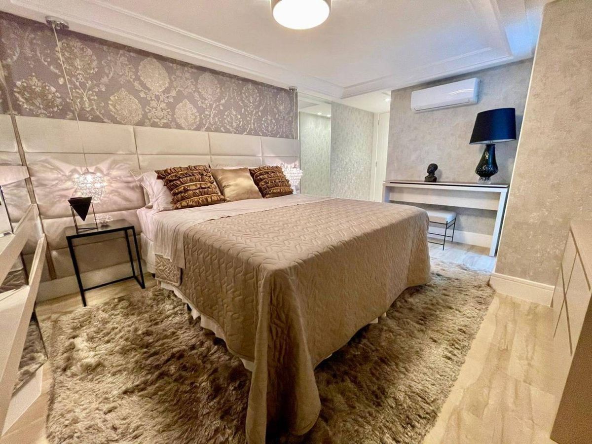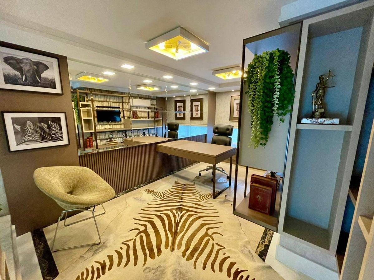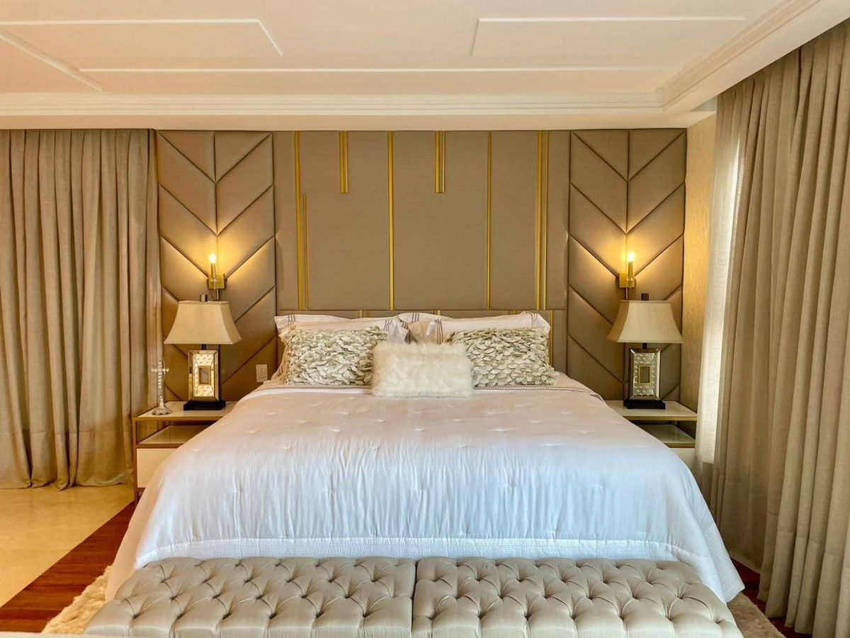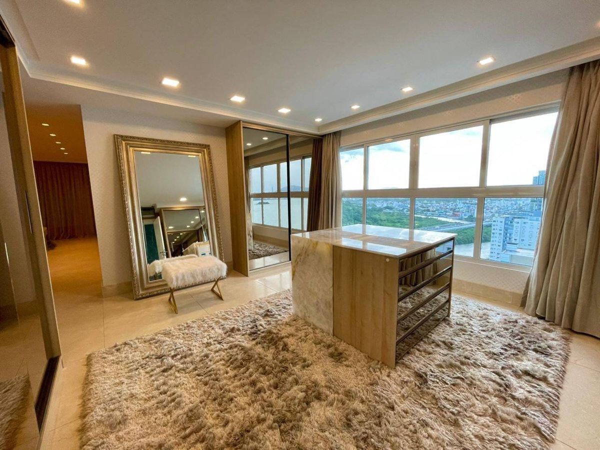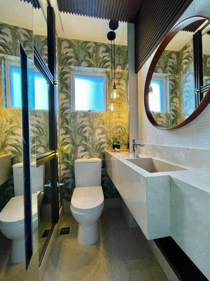 4 Suítes (sendo que 1 Suíte possui sacada e pé direito alto; e 2 suítes tem mezanino ) Lavabo