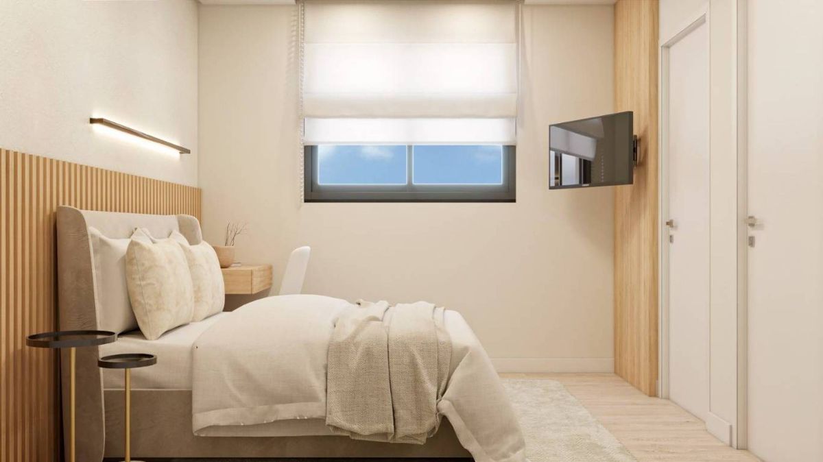 Com 76,44 m² privativos, o Delos Residence 2 oferece uma planta inteligente com 2 dormitórios, sendo 2 suítes, 2 banheiros e 1 vaga de garagem, ideal para quem busca conforto e praticidade no dia a dia. O apartamento conta com acabamento em gesso, churrasqueira privativa, cozinha funcional, lavabo, área de serviço e infraestrutura para split, além de gás e hidrômetro individual e medidores independentes de água, luz e gás.