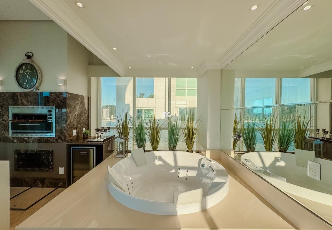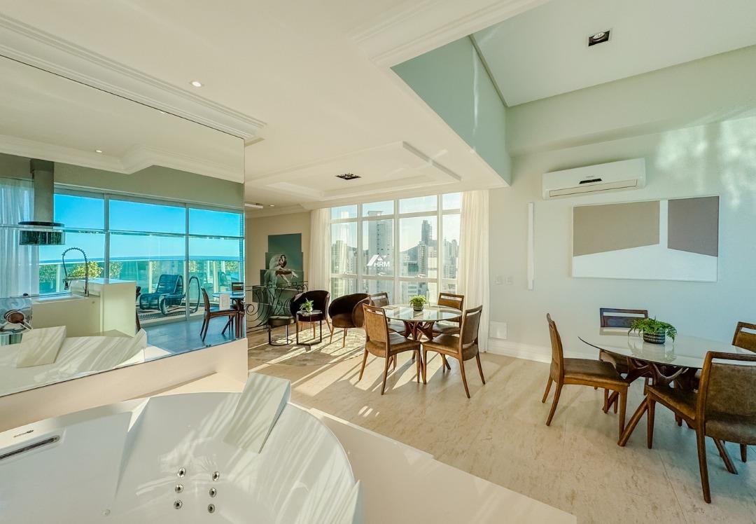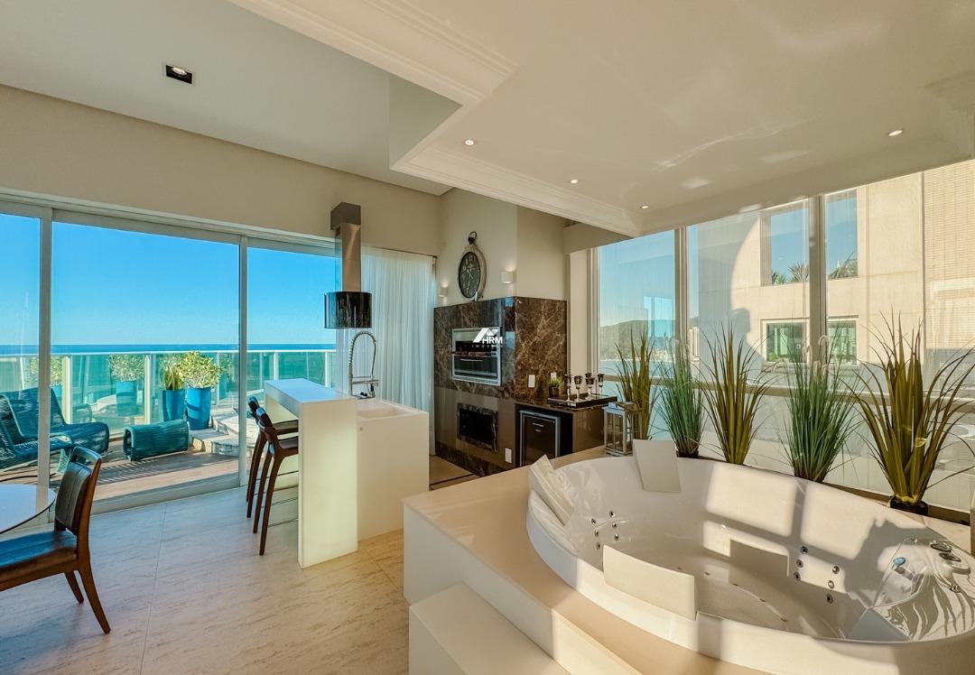 Cobertura Duplex Frente Mar, Mobiliado, Decorado e Equipado, Pronto para morar, Recém reformado pela FG. 1 Piso: 1 Suíte Principal, 2 Suítes, Sala de Jantar, Área de Serviço, Cozinha, 01 Lavado. 2 Piso: Espaço Gourmet com Churrasqueira Elétrica, Banheira de Hidromassagem, Sacada Externa com piscina. 04 Vagas. O Condomínio: Portaria Remota 24h, Infra de Segurança, Gás Central, Academia, Brinquedoteca, Cinema, Deck com Espaço Gourmet, Descanso com Spa, Piscina Externa Adulta e Infantil, Sala de Jogos, Salão de Festas com Espaço Gourmet, Sauna úmida com Ducha.