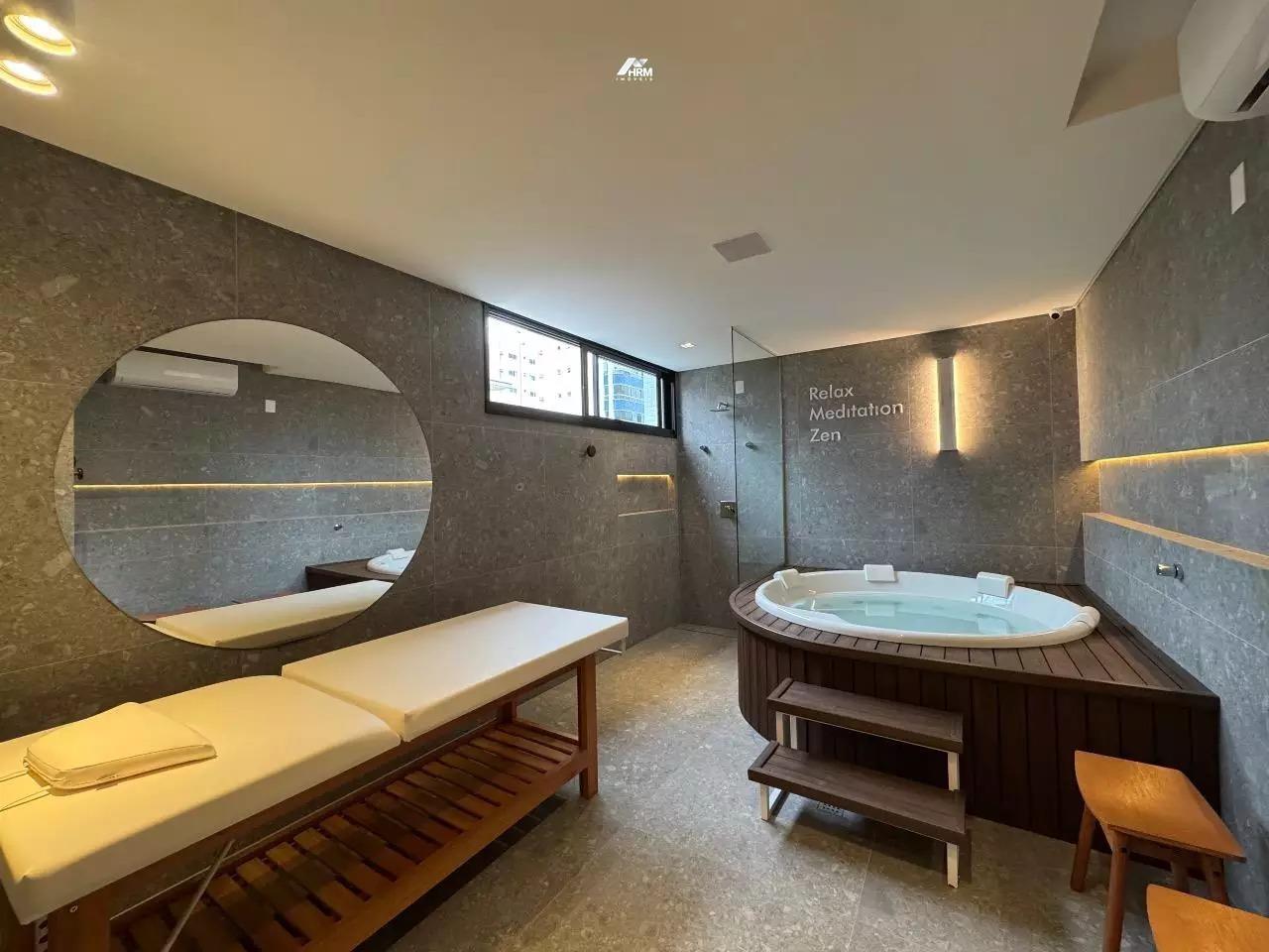 Edifício Sun Beach em Balneário Camboriú com 149,48m² privativos, 04 dormitórios sendo 02 suítes e 02 demi suítes, sala de estar, sala de jantar, ampla área social com cozinha grill (churrasqueira a carvão), lavabo, área de serviço independente e 03 vagas de garagem.