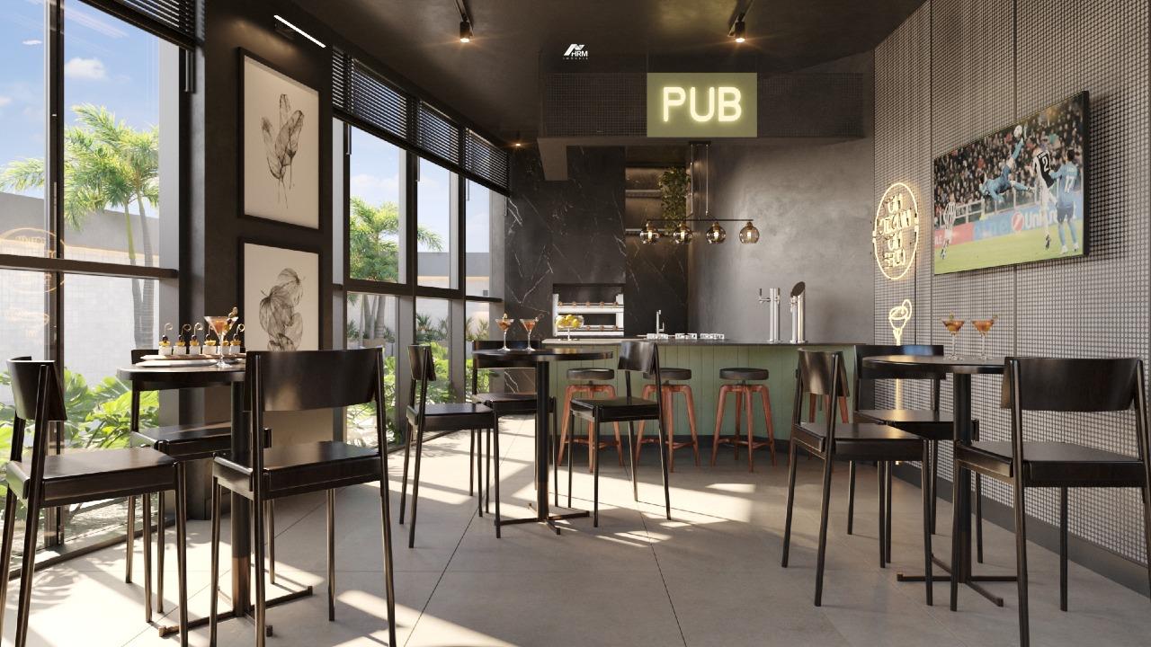 Nos momentos de lazer e bem-estar, o empreendimento oferece academia, bar, espaço gourmet, pub, sala de jogos, salão de festas, playground e solarium. Para relaxar, dispõe de hidromassagem, piscina com hidromassagem, piscina adulta e piscina infantil. O hall de entrada decorado e mobiliado complementa a sofisticação do projeto, enquanto o elevador assegura acessibilidade e comodidade.