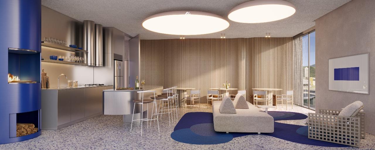 O compromisso com o meio ambiente fica evidente no reaproveitamento de água, enquanto o lazer oferece piscina com espelho d’água, pool lounge, brinquedoteca, sala de jogos, academia e SPA. O rooftop surpreende com dois decks gourmet, blue bar, forneria e áreas pensadas para momentos de convivência.