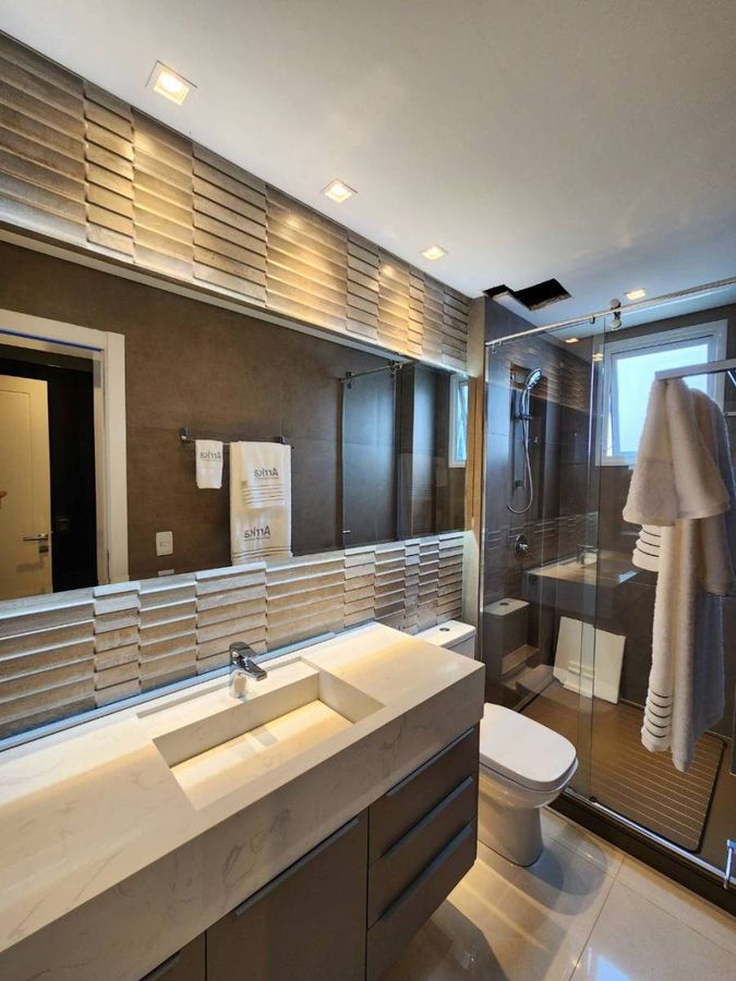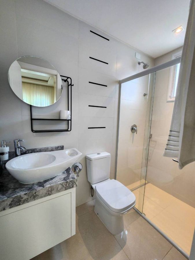 Nos apartamentos, o destaque vai para o home office integrado, o living aconchegante, o lavabo elegante e a área de serviço funcional, todos valorizados pelo acabamento em gesso e pela fechadura com senha na porta de entrada que traz mais segurança. Os ambientes contam ainda com ar condicionado, armários embutidos e aquecimento a gás, garantindo conforto e praticidade.