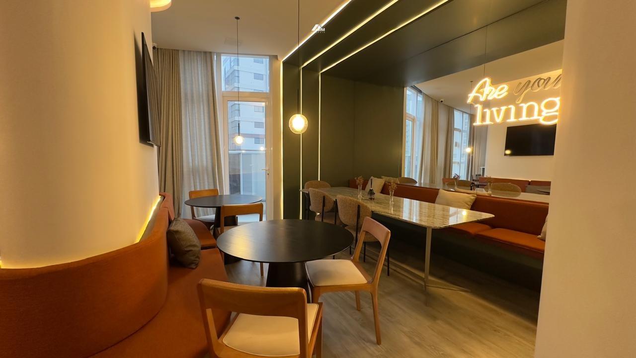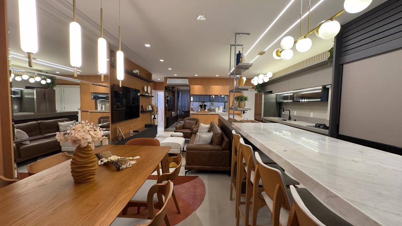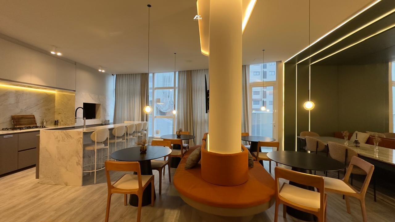Apartamento moderno e sofisticado, com living amplo, sala de estar, sala de jantar e varanda gourmet com churrasqueira, ideal para momentos de lazer e confraternizações. A cozinha é equipada com armários planejados e infraestrutura completa, incluindo aquecimento a gás e infraestrutura para água quente.