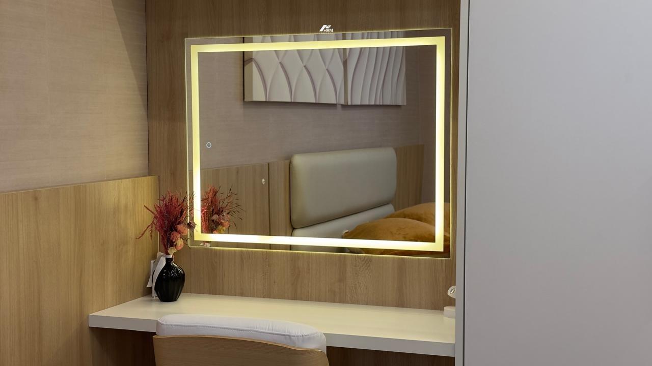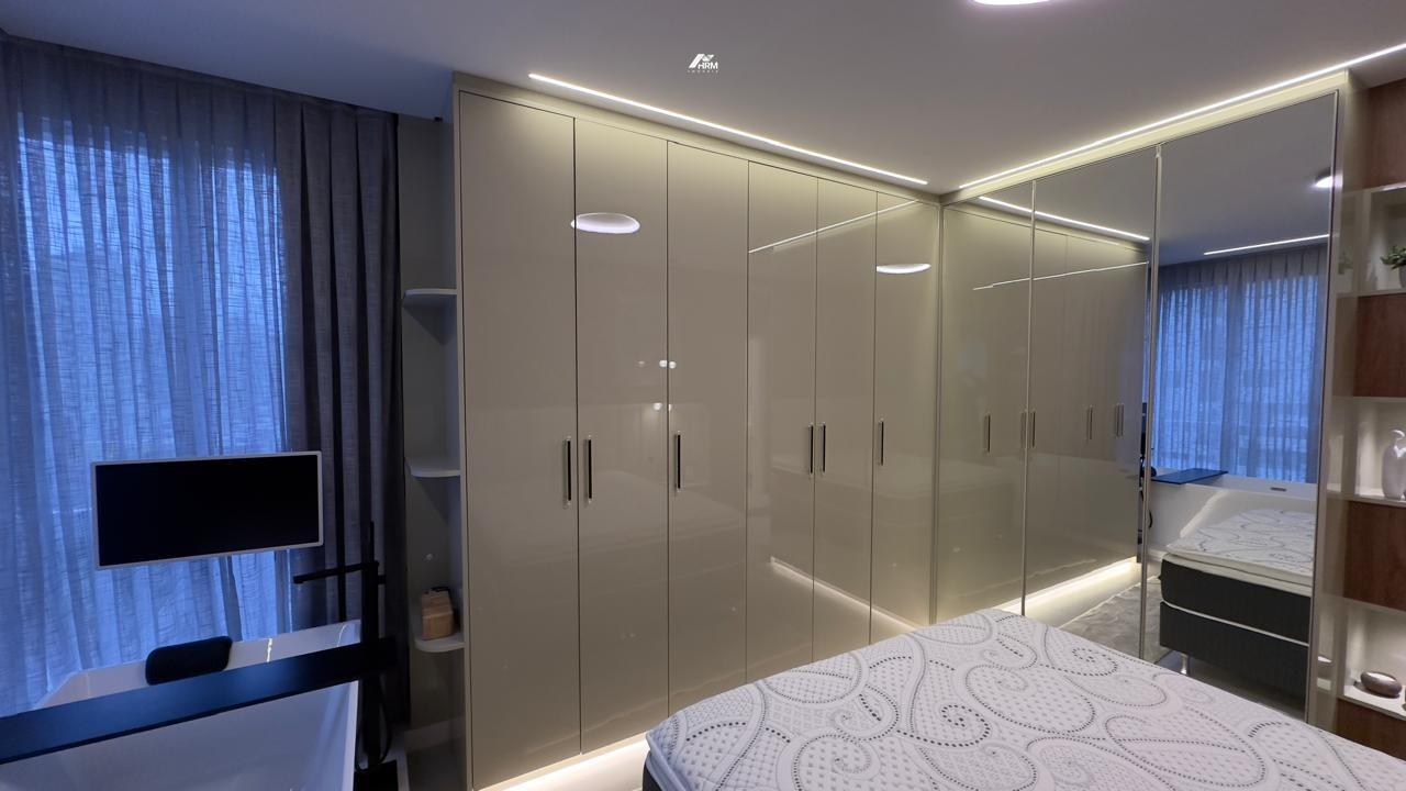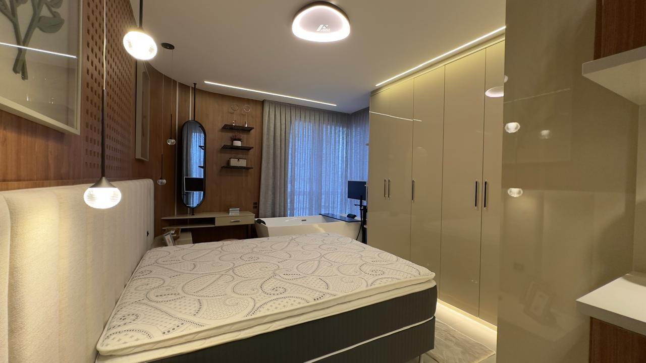 Conta com lavabo, banheiro social e banheira de hidromassagem, acabamento em porcelanato e gesso, além de ar-condicionado, móveis planejados, hidrômetro individual, gás individual, interfone, circuito de TV e internet.