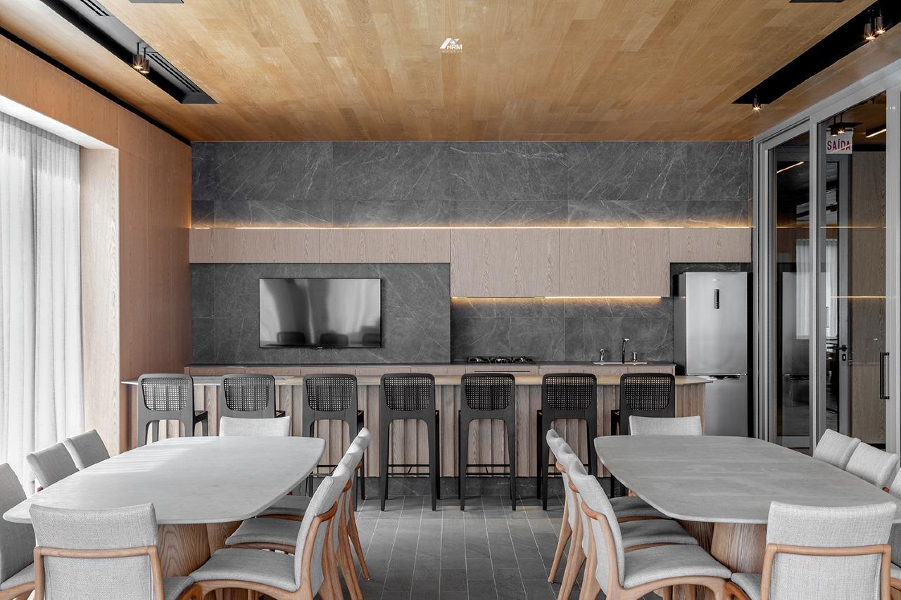 O living com esquadrias Schüco, churrasqueira a carvão e preparação para automação elevam a experiência de morar com elegância. O edifício ainda conta com mais de 1.600 m² de lazer completo, incluindo piscina adulto e infantil, spa, sala de massagem, saunas, academia equipada com aparelhos Technogym, brinquedoteca, espaço teens, quiosque, salões de festas e jogos, além de dois elevadores climatizados.