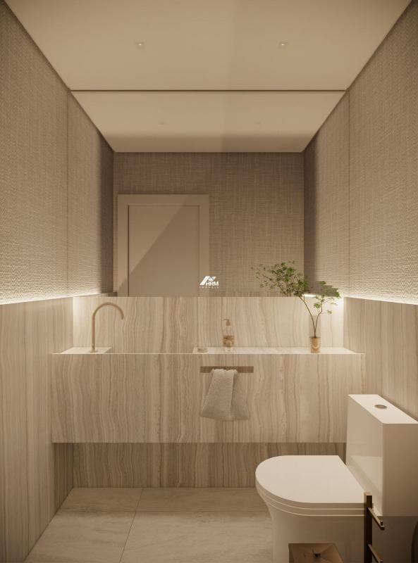 O imóvel oferece acabamento em gesso, piso em porcelanato, infraestrutura para água quente, espera para split, gás e hidrômetro individual, além de uma fechadura com senha na porta de entrada, trazendo praticidade e segurança. A cozinha equipada com churrasqueira à carvão, o closet, o lavabo e a área de serviço com banheiro completam a funcionalidade de um lar pronto para morar com conforto e requinte.