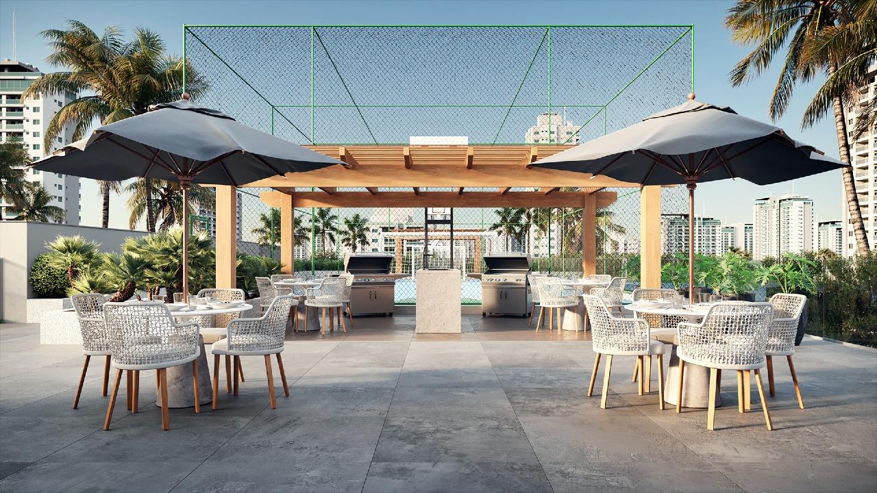 Diferenciais como heliponto homologado pela ANAC, rooftop panorâmico a 185 metros de altura (o mais alto do Brasil), fachada ventilada, reaproveitamento de água, gerador para elevadores e áreas comuns e sistema de concierge consolidam o padrão elevado deste empreendimento único.