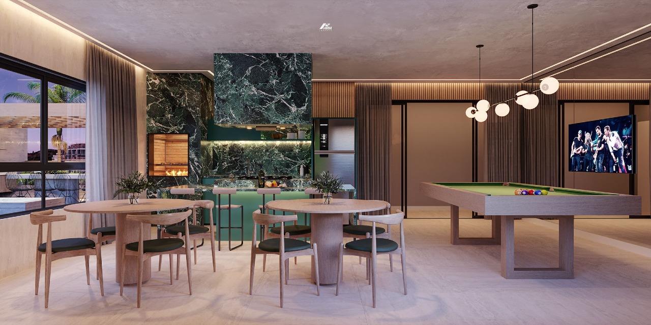 A área de lazer atende a todas as faixas etárias: piscinas (adulto e infantil), spa, jacuzzi, sauna, salão de festas, sala de jogos e playground. O espaço gourmet, o lounge decorado e o espelho d’água garantem ambientes de convivência acolhedores. O prédio inclui ainda academia, brinquedoteca e bicicletário.