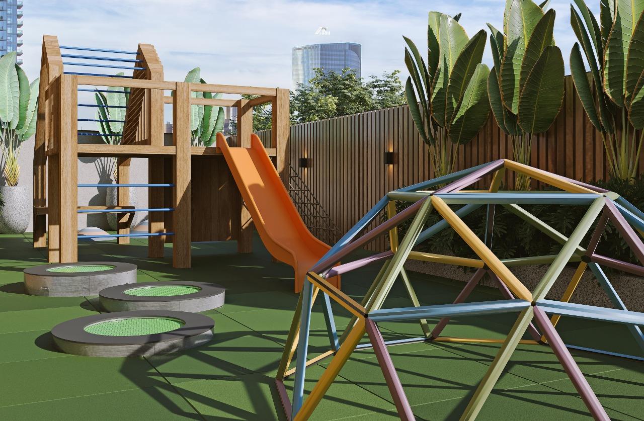 O empreendimento é completo em lazer: academia equipada, brinquedoteca e áreas de convivência como estár social e hall de entrada decorado e mobiliado, criando ambientes acolhedores para você e sua família. A infraestrutura também inclui interfone e medidores individuais de água, luz e gás, garantindo autonomia e conforto.