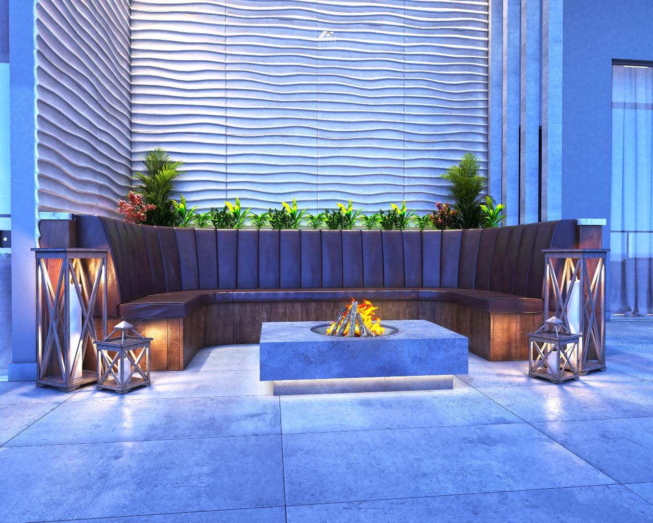Rooftop, pub, fire place, coworking e espaço gourmet