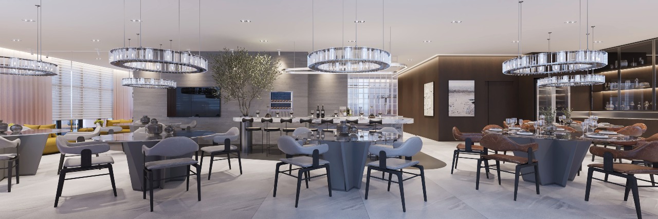 Lounge e ambientes comuns integrados com tecnologia e bom gosto