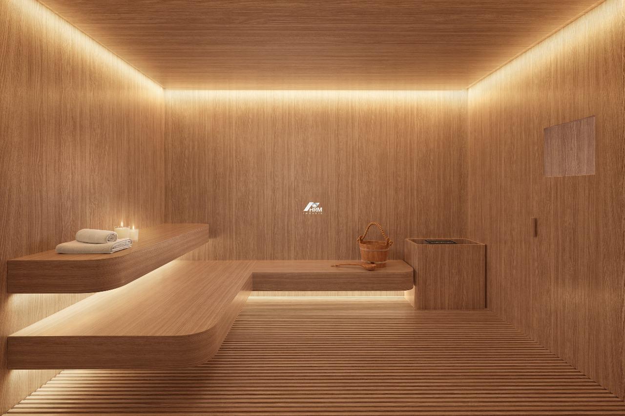 O empreendimento conta com 31 pavimentos, sendo 23 de apartamentos e apenas 2 unidades por andar. A estrutura de lazer soma 1.400m², com opções distribuídas no mezanino e rooftop, incluindo piscina adulta, infantil e térmica, spa, academia, brinquedoteca, playground, sala de jogos, salão de festas, espaço gourmet, bar, snack bar, coworking, boliche, sauna seca e úmida, quiosque, cozinha do chef e poolbar. A infraestrutura ainda contempla bicicletário, zeladoria, guarita de segurança, monitoramento por câmeras, acesso por biometria, 3 elevadores (1 de emergência), gerador de energia nas áreas comuns, som ambiente e preparação para automação em todos os espaços coletivos.
