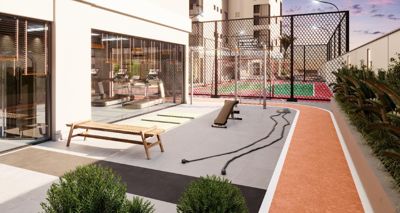 Os apartamentos possuem living integrado, lavabo, cozinha funcional e churrasqueira, com porcelanato de alto padrão e preparação para ar-condicionado tipo split. O teto rebaixado em gesso garante sofisticação, enquanto a sacada amplia a sensação de amplitude e conforto.