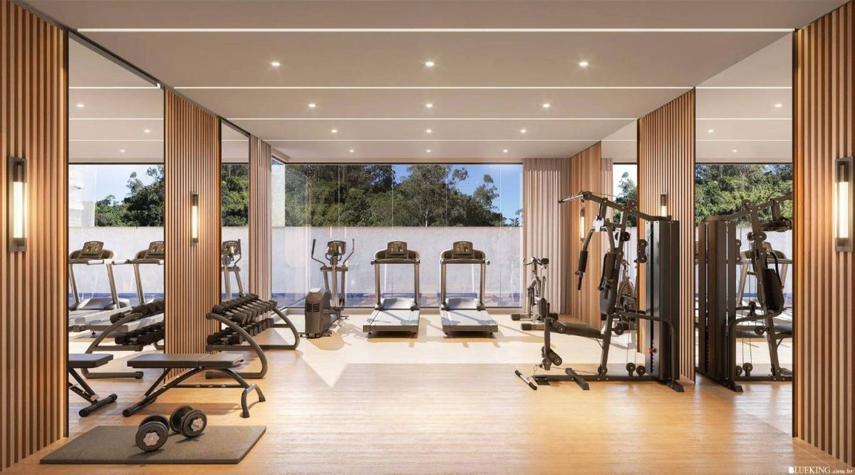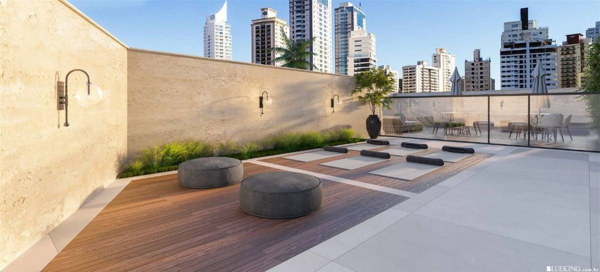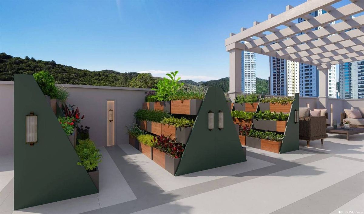 A área de lazer ocupa 1.065m² e é dividida entre espaços internos e externos. Conta com piscina com borda infinita, jacuzzi, salão de festas, sala de jogos, academia, rooftop com lounge mirante, sky office privativo, pet place, yoga space, horta, playground e espaço kids. O empreendimento também dispõe de infraestrutura para portaria 24h, biometria nas áreas comuns, pontos para veículos elétricos, espaço delivery e coleta de águas pluviais.