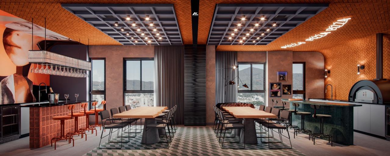 A área de lazer impressiona pela diversidade e inovação: piscinas adulto, infantil e prainha, solarium, fire pit, pet place, playground, spa, sauna e academia. No rooftop, uma verdadeira experiência gastronômica e de convivência espera por você, com wine bar, forneria, gourmets interno e externo, salões de festas e praças cobertas e descobertas.