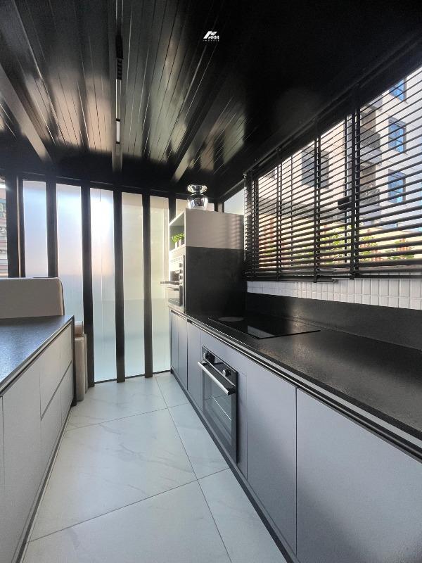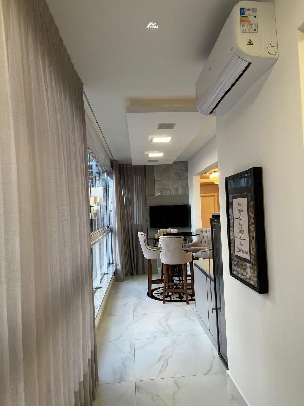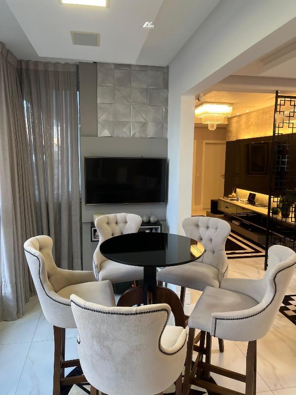 Com 250 m² de área privativa e 275 m² de área total, o imóvel dispõe de três suítes amplas, lavabo, living integrado, cozinha moderna, sala de jantar e sala de estar com acabamentos nobres, como porcelanato de alto padrão e gesso trabalhado. O espaço gourmet externo conta com piscina privativa, churrasqueira a carvão e área de lazer particular. Todos os cômodos possuem ar-condicionado, garantindo conforto em todas as estações. O apartamento oferece duas vagas de garagem no subsolo, com possibilidade de terceira.