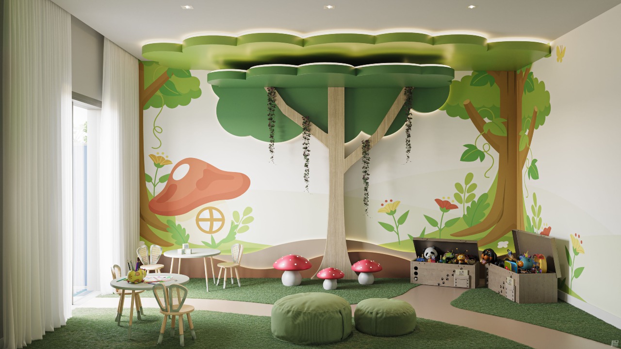 Aqui, a vida pulsa com equilíbrio: o riso das crianças na brinquedoteca, o aroma da comida no espaço gourmet, o som da água reaproveitada que ecoa responsabilidade ambiental. Ravello é lar com alma, estrutura com propósito e beleza com função.