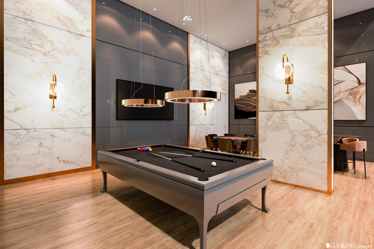 A área de lazer é completa, incluindo piscina infantil, piscina térmica, spa, salão de festas, sala de jogos, espaço gourmet, quadra poliesportiva e fire place. O hall de entrada é decorado e mobiliado, reforçando a sofisticação desde a chegada. A fachada em pele de vidro e os elevadores de última geração adicionam modernidade e estilo ao empreendimento.
