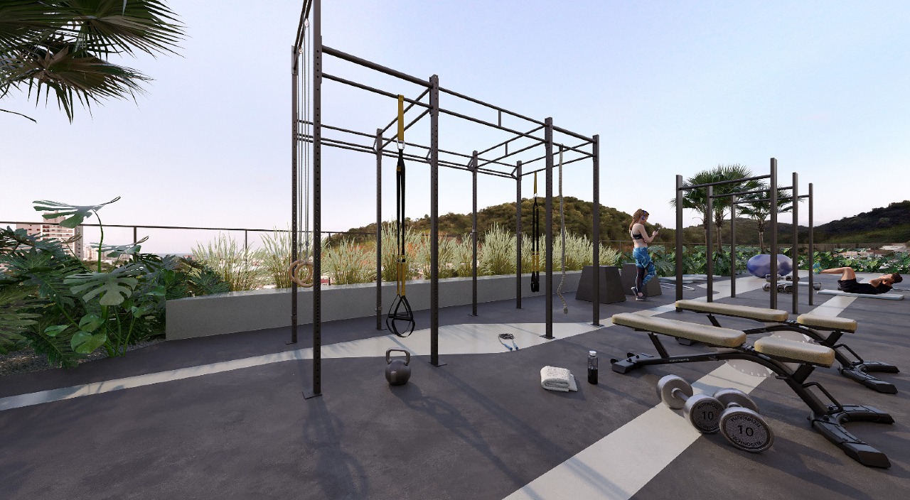 Com cozinha americana, acabamento em gesso e piso porcelanato, os apartamentos unem estética moderna à funcionalidade. A fechadura digital com senha na porta de entrada e os medidores individuais de água, luz e gás reforçam a autonomia e a tecnologia no dia a dia.