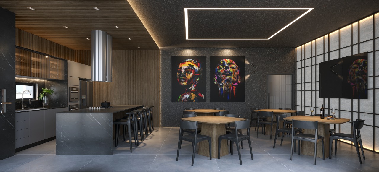 O condomínio oferece uma infraestrutura de alto padrão: piscina, spa, salão de festas, academia, espaço gourmet, sala de jogos, playground, sala de reunião e fire place, criando ambientes ideais tanto para relaxar quanto para socializar.