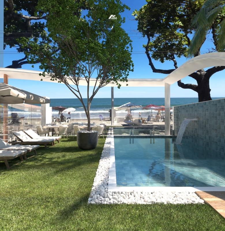 A área de lazer oferece piscina adulto e infantil, sauna, spa, hidromassagem, academia equipada, salão de festas, pub, espaço gourmet, lounge, sala de jogos, brinquedoteca e playground. O empreendimento conta com entrada para banhistas e box de praia, guarita de segurança, sistema de alarme, painéis de energia solar e reaproveitamento de água, sempre priorizando bem-estar e sustentabilidade.