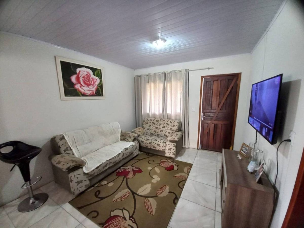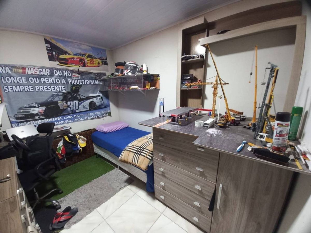 Terreno central em rua de fácil acesso aos bairros. Possui residência em alvenaria contendo 3 dormitórios, 1 banheiro, 2 vagas de garagem com possibilidade de mais, sala, cozinha, área de serviço, casa com jardim e quintal.