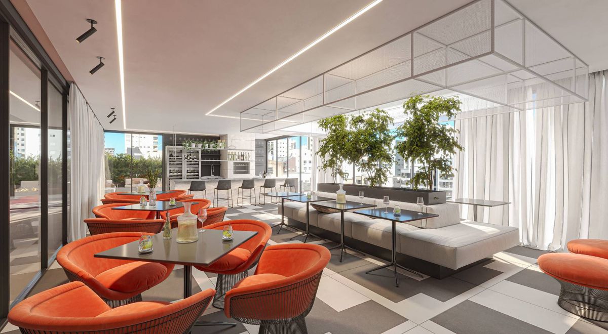 Os apartamentos possuem varanda com churrasqueira, lavabo, living integrado, sala de estar, além de acabamento em gesso, infraestrutura para água quente, espera para split, gás individual e interfone.