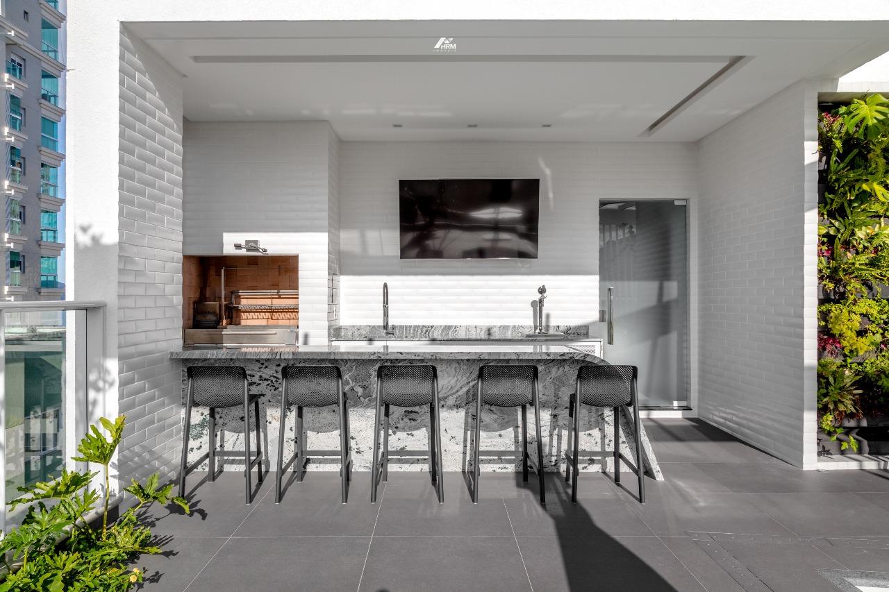 Sustentabilidade e tecnologia se destacam com a fachada de vegetação natural, sistema de autoirrigação, infra para placas solares, pontos de carregamento para carros elétricos e gerador de energia. A segurança é garantida pela guarita, alarme e circuito de TV.